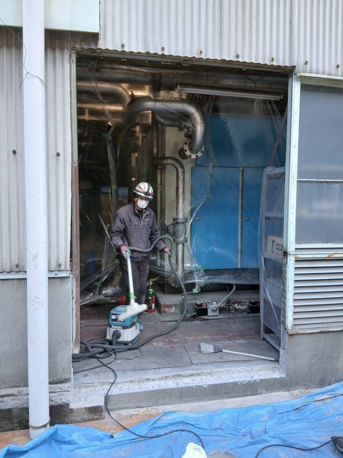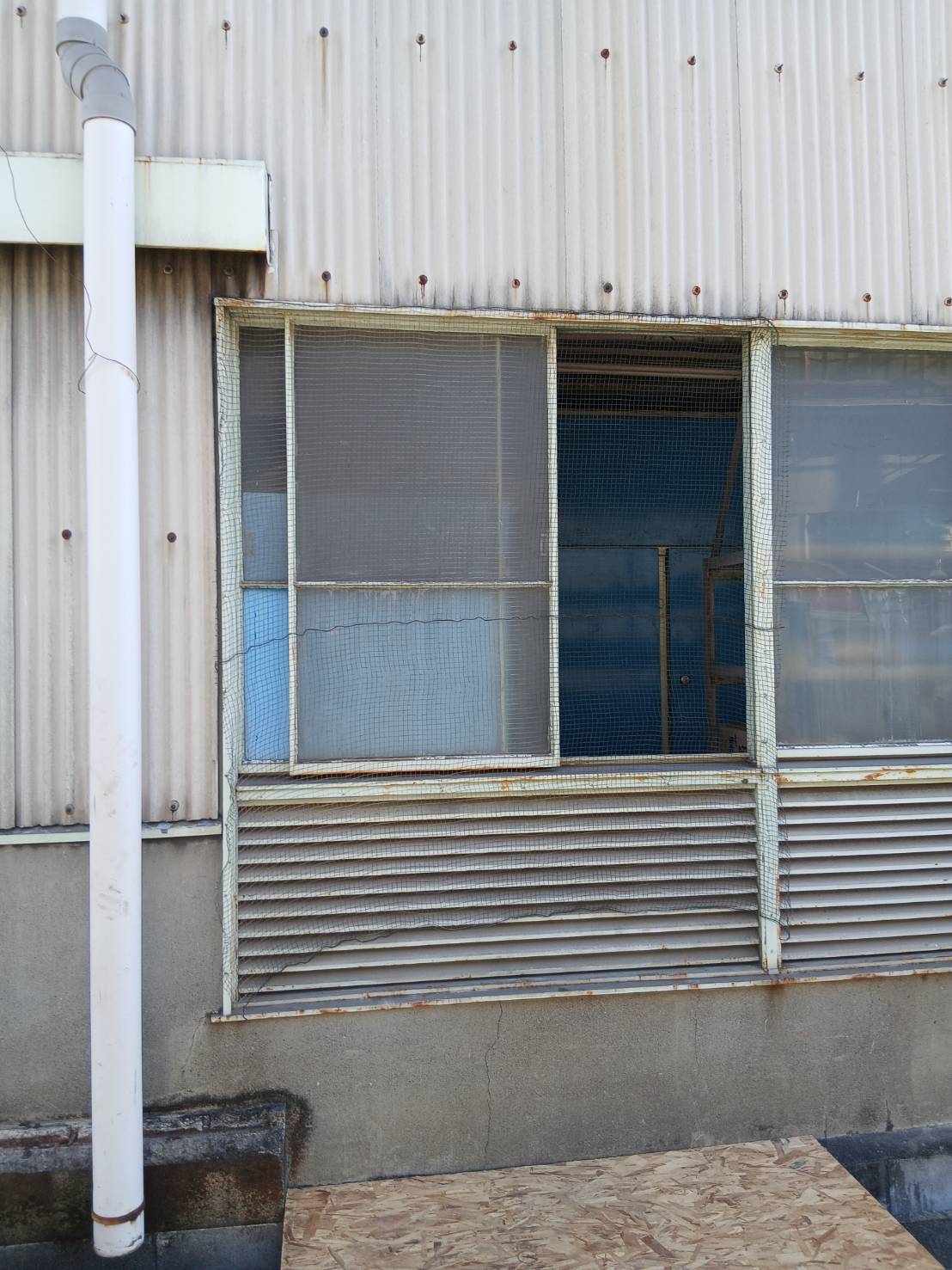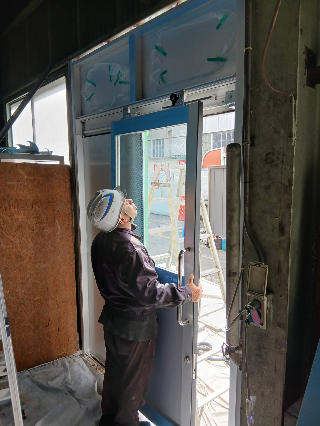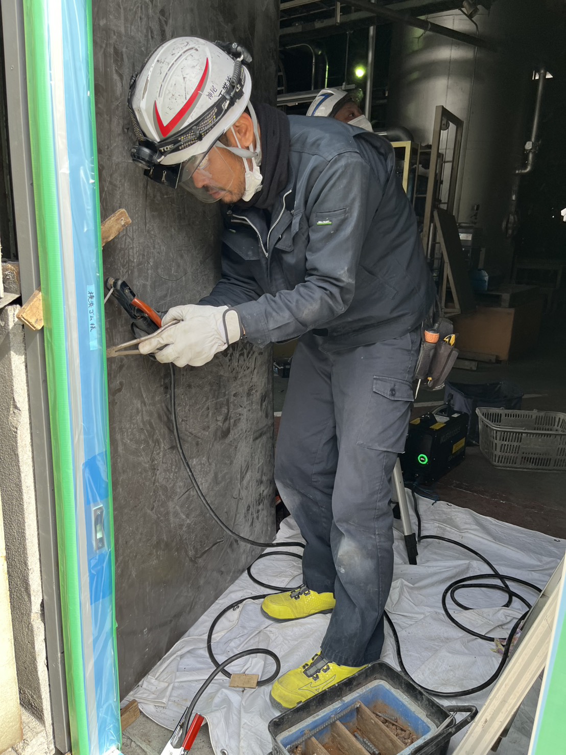 既存スチールサッシを撤去し、新たにアルミ製サッシを溶接にて取付けました。養生、作業中の火花等に細心の注意を払って作業しました。